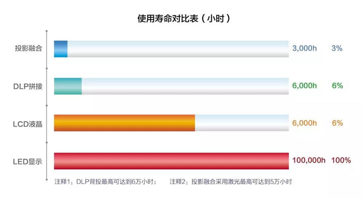 海佳彩亮LED顯示屏100,000小時(shí)超長(zhǎng)壽命,相當(dāng)于33.3個(gè)投影儀壽命相加(投影儀的典型壽命僅3000小時(shí)),打破了時(shí)間限制,成就更多精彩。