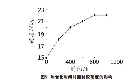 由表1可見,隨熱老化時(shí)間遞增,灌封膠并沒有出現(xiàn)與塑殼分離脫落現(xiàn)象,說明灌封膠在高溫下仍保持良好的粘接性。